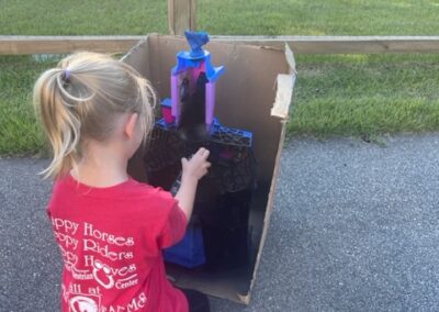 I saw this activity years ago on Instagram, and thought it was a perfect thing to do with Vampirina’s house the kids didn’t want anymore. We spray painted it black and gray, decorated it with Halloween items, and it has become a fun decoration for the house. Plus the kids still play with it.