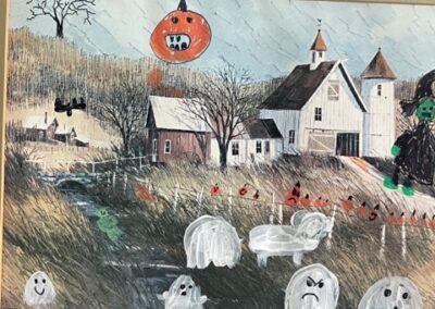 We had to try the ghost painting craft that has been all over the Internet: Find an old painting and add ghosts, pumpkins, and bats. I love how the kids’ paintings came out—they will be treasures for a long time. Plus it’s a great way to recycle old art. It took us several thrift shop trips to find old paintings at a decent price. These prints on Amazon would also work: