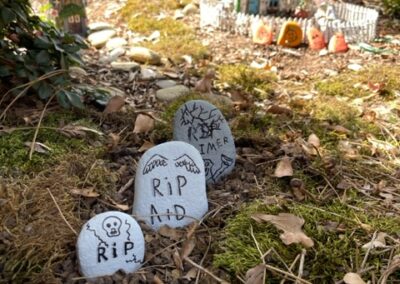 We updated our fairy garden to have a spooky vibe.